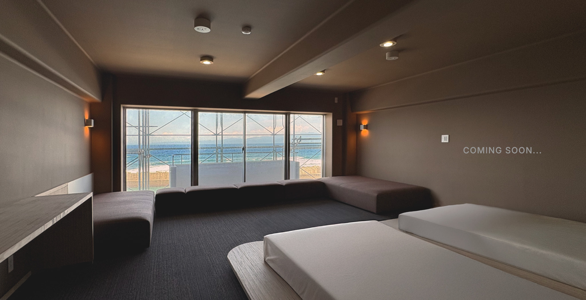 窓には大きな海と空、自然の光や風が入り込む。特別な飾り気はいらない。